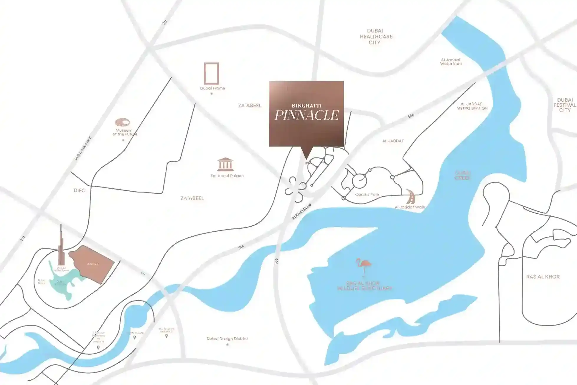 • Prime Al Jaddaf location in Dubai Healthcare City Phase 2, with easy access to Downtown Dubai, Business Bay, Dubai Creek, and major highways