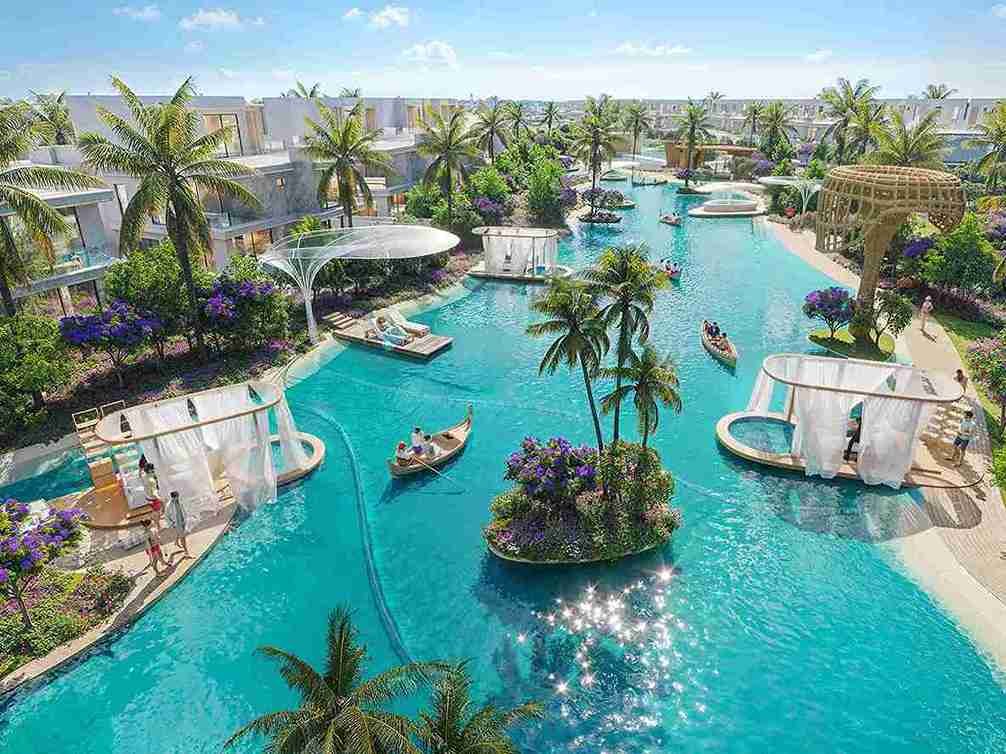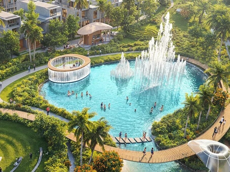 The twin villas and townhouses are crafted with an emphasis on spaciousness, functionality, and modern tropical design. The villas, with their Calacatta Gold flooring, brushed brass fixtures, and luxurious bathroom features like Marvel W Taj Mahal wall finishes, offer a sophisticated living experience. The open-plan townhouses are designed with personal gardens and terraces, combining modernity and tropical flair. The island community is inspired by world-renowned island destinations such as Tahiti, Barbados, and Maui, offering more than 45 rejuvenating facilities, including a Zen Garden, nature dining experiences, and professional spaces amidst serene landscapes. This development is a sanctuary designed for both relaxation and community, making it a perfect blend of luxury and nature.