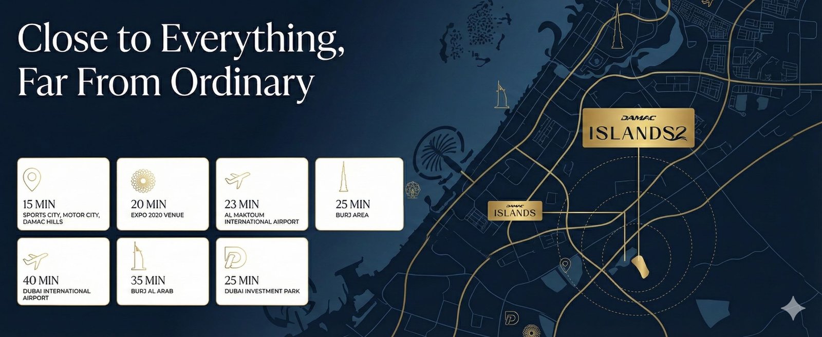 Damac Properties extends its legacy with Damac Islands 2, an exclusive community in Dubai featuring 8 new island clusters offering 4 to 6-bedroom villas and townhouses. Following the tremendous success of the original Damac Islands, this new phase continues to deliver an upscale island-inspired lifestyle, with proven returns for investors. Designed to reconnect with nature and like-minded individuals, the development offers over 45 amenities catering to wellness, adventure, socializing, culture, and entertainment. The residences are thoughtfully positioned along the water’s edge or nestled in greenery, with elegant, modern architecture, large windows, expansive balconies, and open terraces that create luxurious, timeless homes.