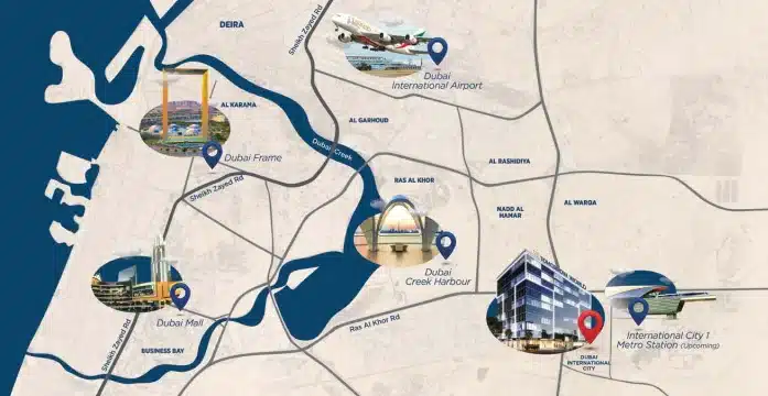 Tomorrow Commercial Tower is a visionary, sustainability-focused commercial development launched by Tomorrow World Properties in International City, Dubai. Nestled along the district’s main commercial artery and just 400 metres from the forthcoming International City 1 Metro Station, the tower ensures both high visibility and seamless connectivity to core business and lifestyle hubs, including Dubai International Airport, Business Bay, Downtown Dubai, and Dubai Creek Harbour.